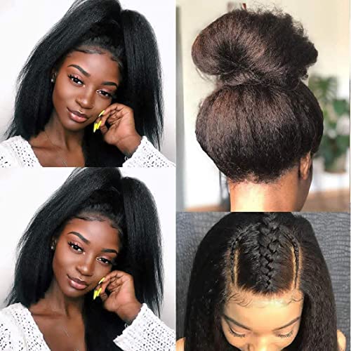 SKULD 4" x 4" Yaki Wig Parrucca Donna Capelli Veri Wigs Lace Closure Wig Brazilian Human Hair 150% Density Parrucca Capelli Umani (14inch)