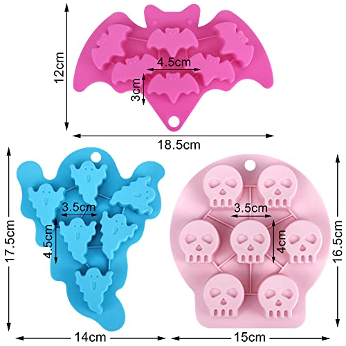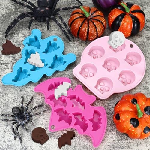 Skull Bat Ghost Vassoio per cubetti di ghiaccio Halloween Stampo per cioccolato Stampi in silicone per decorazione di torte Sapone Stampo da forno Sugarcraft Confezione da 3 (colore casuale)
