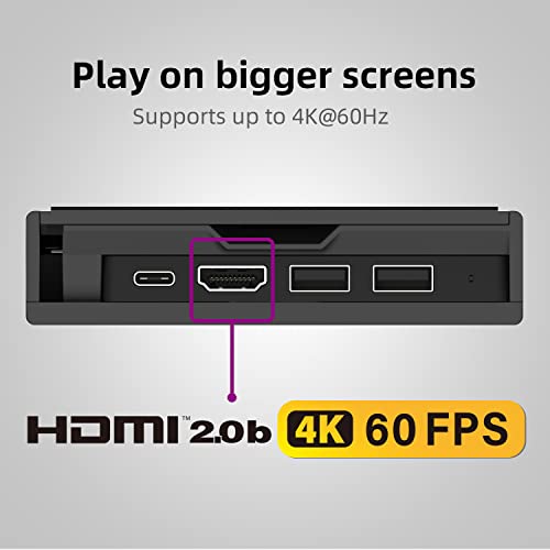 Skull & Co. SteamDock with Detachable Portable USB Hub HDMI TV Adapter for Steam Deck, ROG Ally, Smartphone and MacBook- Black (with Extension Cable)