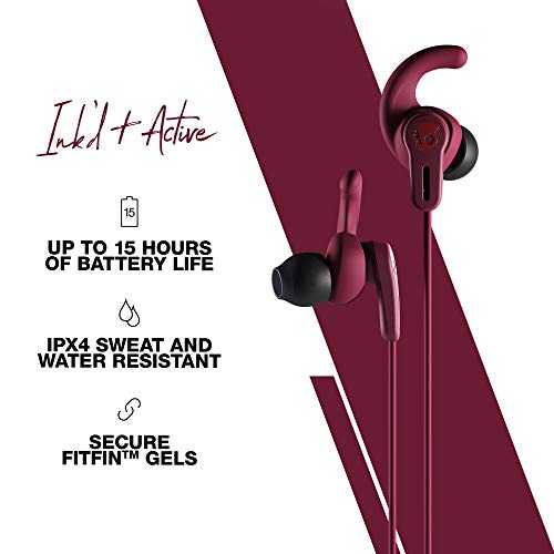 SKULLCANDY Ink'd+ - Auricolari wireless attivi con microfono, gel fitfin, IPX4 resistente al sudore e all'acqua, durata della batteria di 15 ore con ricarica rapida, colore: rosso Moab