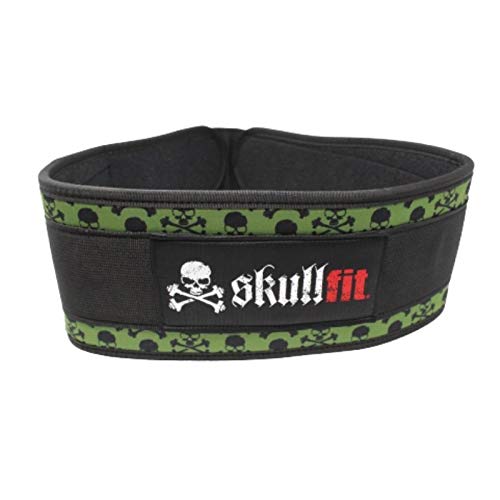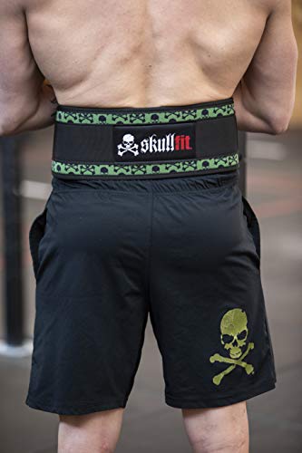 Skullfit Belt Black Skull,Workout Belt in Nylon di Colore Nero-Verde. Cintura Ideale per utilizzo Durante l'allenamento, Grazie allo Speciale allaccio - S