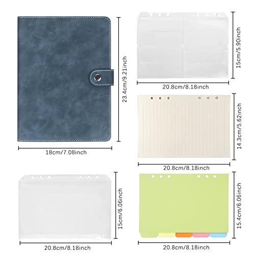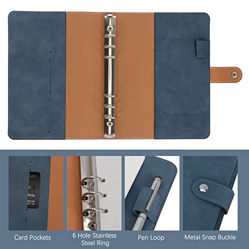 Skycase Raccoglitore ad anelli formato A5, A5, con 6 fori, in pelle PU, per raccoglitori ad anelli, formato DIN A5, con carta di riempimento/tasche di carta, blu