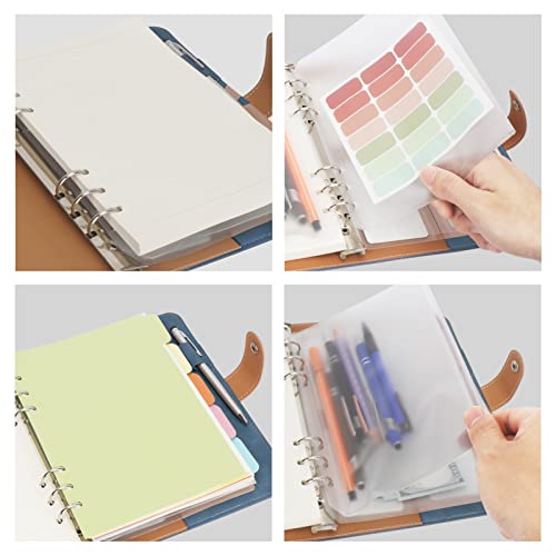 Struttura pratica: il taccuino A5 a 6 anelli è strutturato con una pratica chiusura a scatto in metallo, contiene carta di ricarica A5, tasche per raccoglitori e fogli di carta divisoria all'interno, perfetto per diario di viaggio, taccuino per il budget, quaderno per schizzi, taccuino, organizer personale, agenda, ecc.