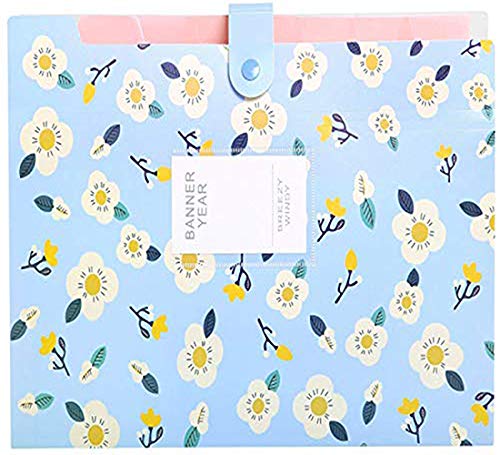 Skydue Floral Printed Accordion Document File Folder Expanding Letter Organizer (BLUE)