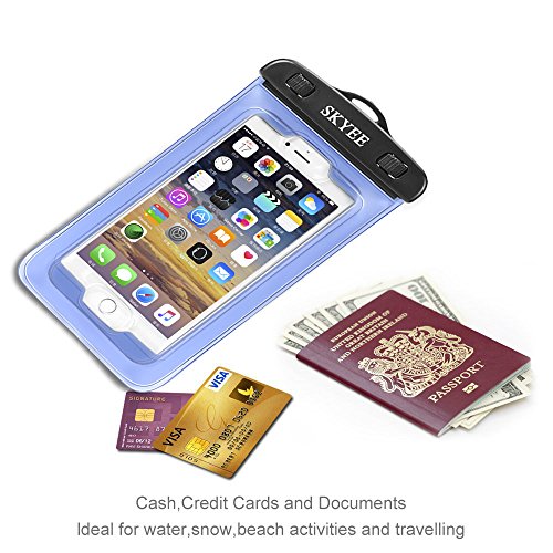 SKYEE Custodia Impermeabile iPhone 7 con Fascia da Braccio, IPX8 Certificato Borsa Sacchetto Universale Touch ID Custodia Impermeabile Smartphone per iPhone 7/ 7 Plus/ 6s/ 6s plus/ 6/ 6 plus/ 5s/ 5c/ 5 (Riconosce l'impronta Digitale) per Spiaggia Nuoto Rafting Surfing Skating Canoa (Bleu)