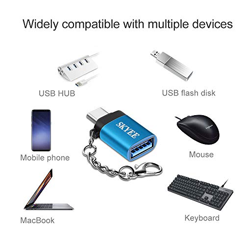 Skyee (3 Pezzi Adattatore USB C a USB 3.0 con Anello Portachiavi, OTG Type C per MacBook PRO 2018 2017 2016, Google Chromebook Pixel, Huawei Matebook, Samsung Galaxy S9 e Altri - Blu