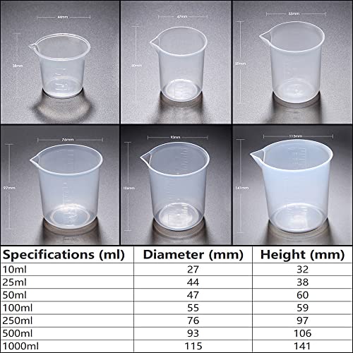 SKYPRO 50/100/250/500/1000ml Bicchieri di miscelazione in resina, misurini liquidi, bicchieri in plastica, bicchieri in resina epossidica per alimenti in resina, uso in laboratorio, 5 pezzi