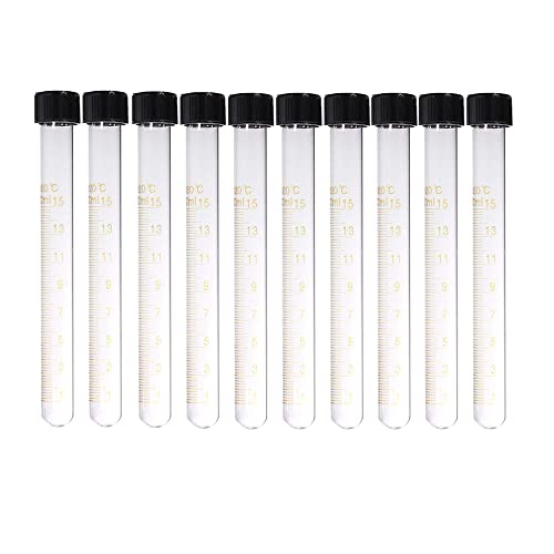 SKYPRO 10 provette per centrifuga da 15 ml, in vetro graduato con tappi a vite, provette di calibrazione resistenti alle alte temperature