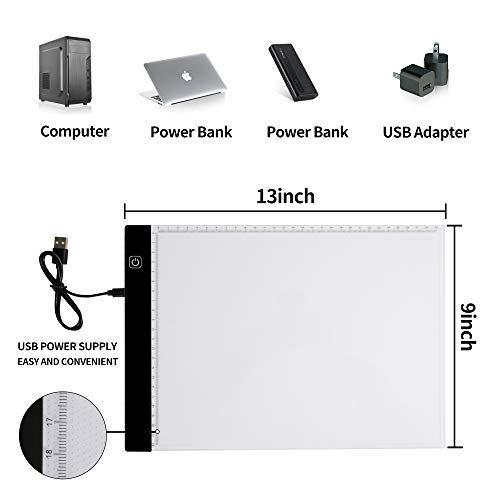 SKYREAT A4 LED Light Boxes Light Pad Pannello Luminoso Blocco da Disegno Scatola Luminosa Portatile Lavagna Ultrasottile con Cavo USB per artisti Pittura, Progettazione, Disegno, Schizzo Animazione