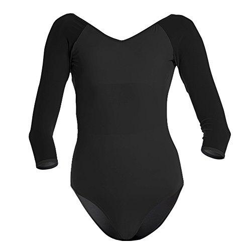 Skyrocket Ragazze e Donne Body per Danza Balletto Leotard 3/4 Manica Nero,XL=Altezza 160-165cm