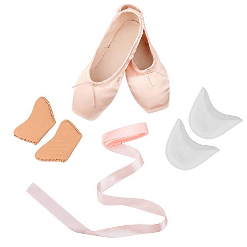 Skyrocket Raso Scarpe da punta per balletto Danza Slipper con il pastiglie punta e Nastro