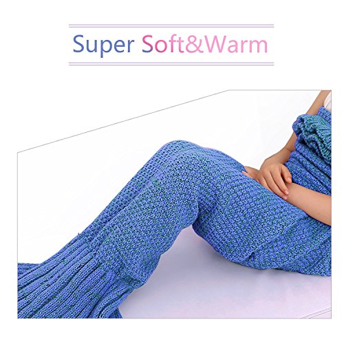 SkySea Sirena Coperta Tutte le Stagioni Sirena Maglia Coda Coperta Accogliente Letto Divano Borsa Coccole Coperta Grande Dono per I Bambini 56 * 28 Pollici (Lago Blu)