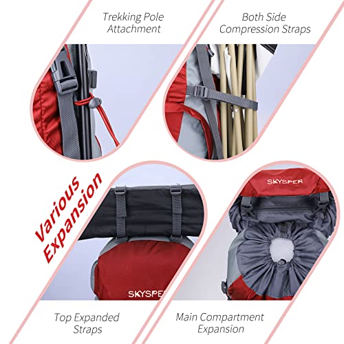 SKYSPER 50L Zaino da Treking, Zaino Montagna Impermeabile con Copertura della Pioggia per Viaggio Trekking Escursione, 2 Rosso