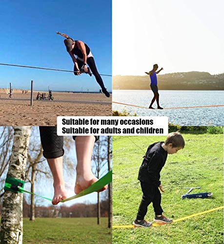 Slackline, Slackline con Cricchetto Linea di Allenamento Protezioni per Gli Alberi Adatta ai Principianti ma Anche al Trickline, Facilissima da Montareorange-30m