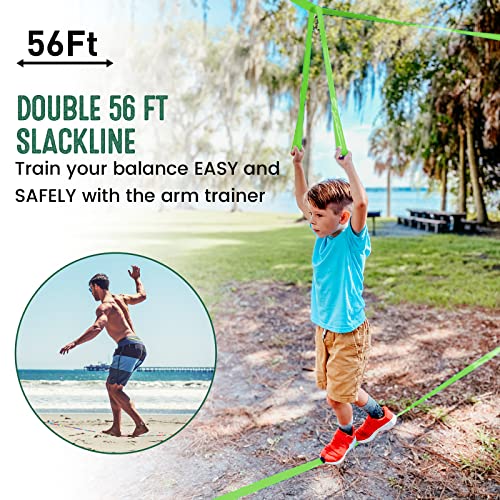Slackline Linea 17m per Bambini,Arrampicata Ostacolo di Corda per Bambini con Altalena, Scala di Corda, Rete a Ostacoli, Braccio Trainer, Protezioni per Alberi e Borsa da Trasportare