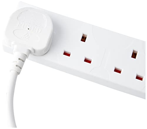 Slamtech - Ciabatta a 4 uscite con cavo di prolunga, 10 metri, 13 A, colore: bianco