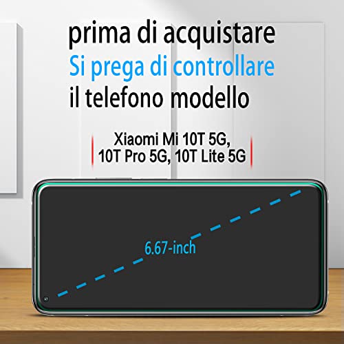 Slanku 3 Pezzi, Vetro Temperato per Xiaomi Mi 10T 5G, Mi 10T Pro 5G Pellicola Prottetiva Anti Graffio, Durezza 9H, Anti-Impronte, Senza Bolle, Durezza 9H, Facile da installare
