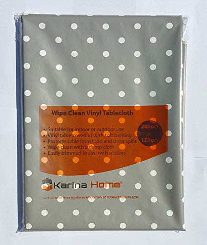 Slate Grey Polka Dotty Wipe Clean Tablecloth Vinyl by Karina Home 200cm x 137cm by Karina Home