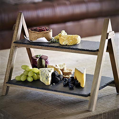 Slate Serving Board Premium Bamboo Slate Boards alzata a 2 piani pieghevoli Racks food/tapas/sushi/aperitivi, piatti da portata vassoio piatti piatti