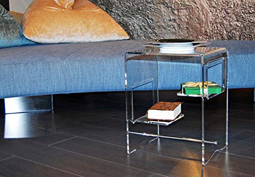 Slato Comodino da Notte dal Design Moderno a tre ripiani in plexiglass Trasparente Euridice