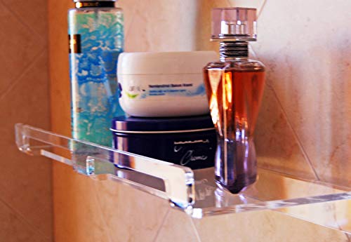 Slato Mensola da bagno a muro porta oggetti dal design moderno in plexiglass trasparente Dione disponibile in tre dimensioni (Grande (50×14 cm))