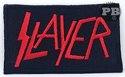#867 SLAYER - Toppa ricamata da cucire con ferro da stiro, colore: Rosso e nero