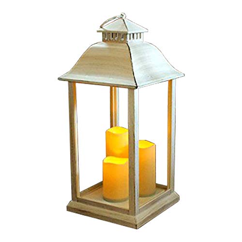 Questa elegante lanterna alimentata a batteria dispone di tre candele LED tremolanti che possono essere accese on/off o impostate su 4 ore on/20 ore di spegnimento del timer.