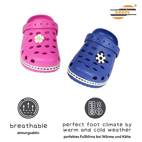 CHILD-FRIENDLY COLOURFUL - Colori vivaci e allegri con spille come il fiore o il calcio - Zoccoli di gomma dal design amorevole e muli per ragazzi e ragazze - Zoccoli per bambini per tutti i gusti