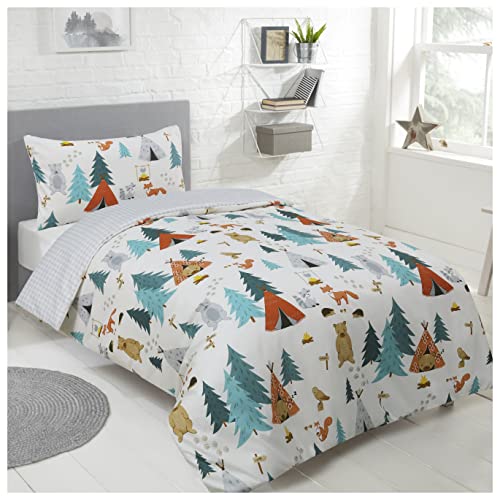 Vivace e stravagante, il nostro set copripiumino stampato Woodland Animals Camping Scene è il design perfetto per i più piccoli che amano la vita all'aria aperta. Presenta una gamma di amichevoli creature boschive, da orsi, volpi, scoiattoli, ricci e gufi.