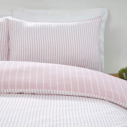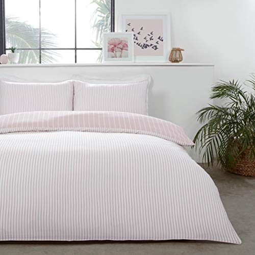 Sleepdown Set di Biancheria federe per Letto Super King Size (220 x 260 cm) con Mini Righe, Colore Cipria, Policotone, Blush Rosa Bianco
