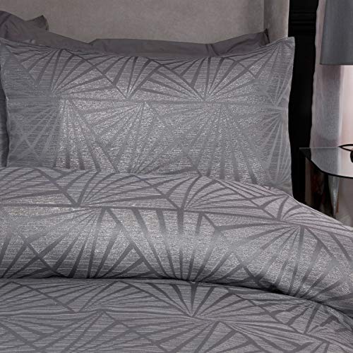 Sleepdown Set di Biancheria federe, Super Morbido, Motivo Geometrico, in Lurex Jacquard Argentato, Facile da Pulire, per Letto Matrimoniale (200 x 200 cm), Poliestere, Argento, Doppio