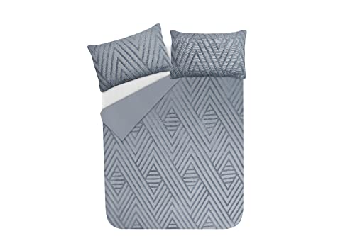 Sleepdown Set di biancheria da letto con copripiumino e federe, motivo geometrico, con motivo trapuntato, grigio antracite, morbido, facile da pulire, king size (230 cm x 220 cm)