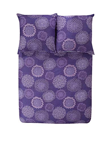 Sleepdown - Set Copripiumino Double-Face, Motivo Geometrico con Spiro Floreale Viola, Ultra Morbido, Facile da Pulire, con Stampa Bianca, 155 x 220 cm + 2 federe da 80 x 80 cm