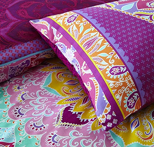 Sleepdown - Set con copripiumino e federa, reversibile, morbido, facile da pulire, colore: rosa, motivo cachemire a mandala geometrico, singolo (135x 200 cm)