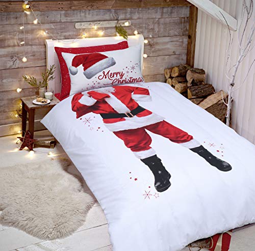 Sleepdown - Set copripiumino reversibile e federe per letto a Babbo Natale (Babbo Natale e signora Claus, singolo)