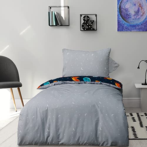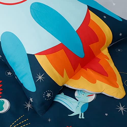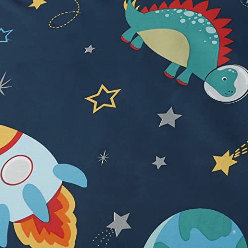 Sleepdown Dinospace - Set di biancheria da letto con copripiumino e federe, multicolore e reversibile, motivo Rocket, morbido e facile da pulire, singolo (135 cm x 200 cm)