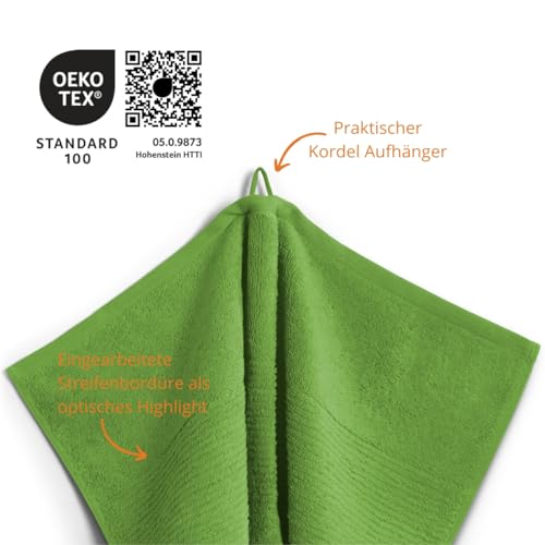 Sleepling Marina 196797 - Set di 2 asciugamani in 100% cotone, 550 g/m², ganci con cordoncino, design con bordatura, Ökotex 100, 50 x 100 cm, colore: Verde lago