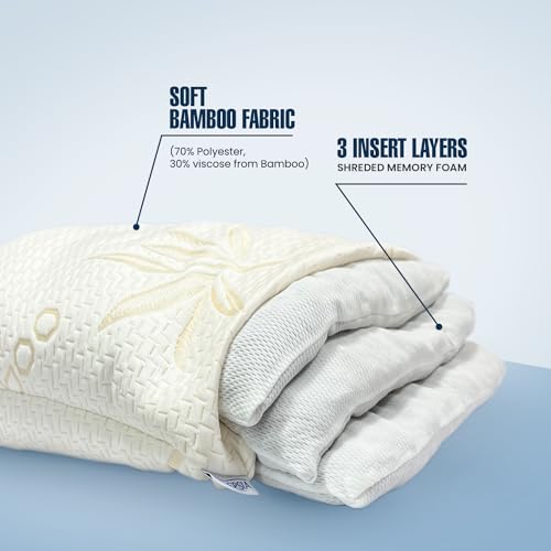 Sleepsia Cuscino Bamboo (Confezione da 2-70x40 cm) - Cuscino regolabile in morbido memory foam per fianco e schienale - Cuscini letto con rivestimento lavabile
