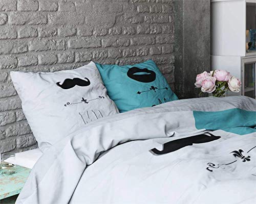SleepTime Biancheria da letto “Mr. and Mrs. 2”, 135 cm x 200 cm - 200 x 200, Microfibra, turchese, 200 x 200