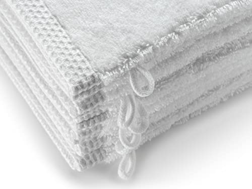 SLEEPZEN Guanti da bagno cotone biologico - Bianca - Certificato Gots 500gr/m2 - Made in EU - Set di 6 - Assorbente, morbido ed ecologico, asciugamani da bagno per neonati e bambini, 4 colori