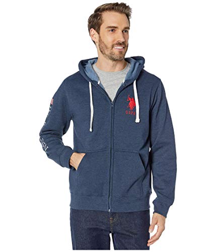 U.S. Polo Assn. Men's Long Sleeve Zip Front Hoody, Army Print Ink Blue Heather, M
