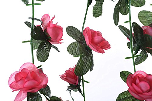 Sleipmon Confezione da 5 Fiore Finto Rosa Vite Piante Fiori Artificiali Rose, 12,5 m Appeso Rose Ivy Home Hotel Office Wedding Party Garden Craft Art Decor Rosa