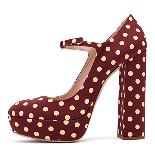 Slenderer Dolce Pumps Donne Tacco Blocco Tacco Alto Bow Scarpe Piattaforma Party Heels Cosplay Dress Scarpe Ankle Strap Polka DOT Performance Red Size 45