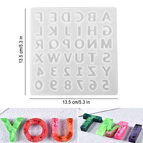 【Stampo in silicone riutilizzabile per lettere e numeri】 Realizzato in silicone resistente, lo stampo in resina 13,5 cm (lunghezza) x 13,5 cm (larghezza), che è flessibile, antistrappo, riciclabile, facile da pulire e smontare. Contiene 26 lettere maiuscole dell'alfabeto e 10 numeri per diverse combinazioni.
