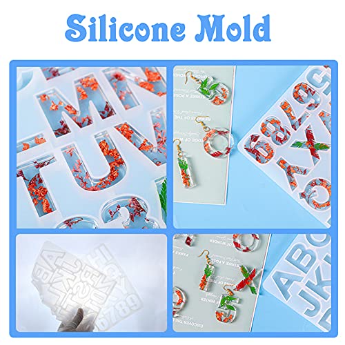 SLequipo Stampi Resina, Epoxy Resin Kit Indietro Alphabet Mold Stampi Silicone con Pin Vise Hand Drill Bits e Portachiavi con Gancio a Vite per DIY Resin Jewelry Kit
