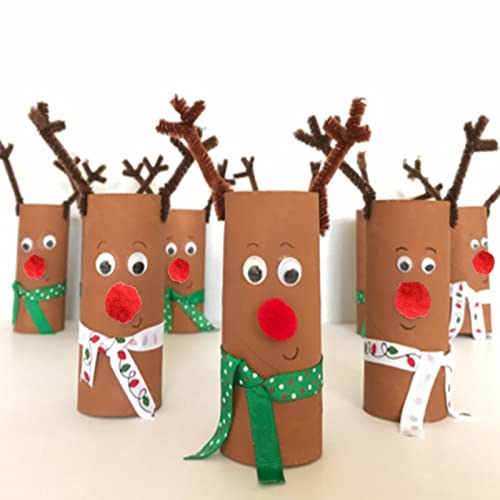 SLFYEE 400PCS Scovolini di Natale Scovolini Ciniglia Marrone Steli di Ciniglia Autoadesivo Occhi Plastica Scovolini per Lavoretti di Natale Scovolini Ciniglia Fai da Te per Natale Artigianato Creativo