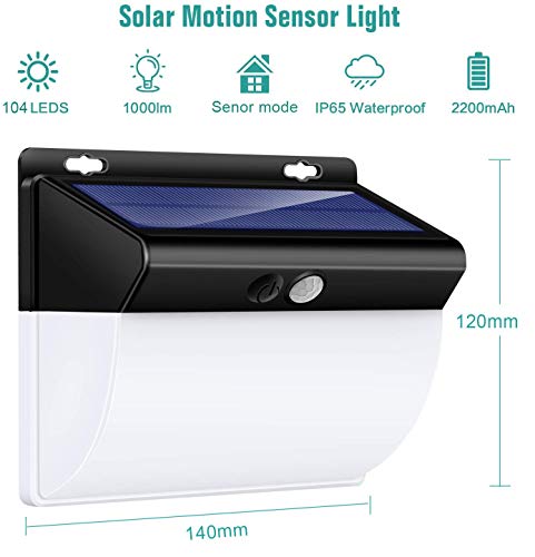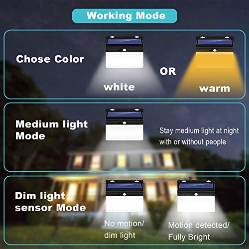 Design unico con angolo curvo: abbiamo adottato un processo speciale per la superficie curva della luce solare per rendere la luce più morbida e luminosa, l'angolo massimo di illuminazione può raggiungere i 270 gradi. Il sensore di movimento PIR integrato delle nostre luci solari può rilevare fino a 120 gradi con una lunghezza del sensore più lunga di 7,9 m, quindi fornisce una gamma più ampia di illuminazione.