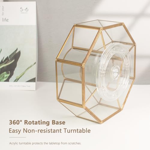 【Vetro ispessito e telaio galvanizzato】 L'organizer girevole per il trucco a 360 gradi è realizzato in materiale ispessito, un pezzo di vetro di spessore di 5 mm, migliora notevolmente la protezione e la durata, processo di verniciatura galvanica di sigillatura, alto antiossidante, struttura in metallo e venature verticali in vetro articolazione è solida, liscia e non tagliata, la durata è fino a dieci anni o più.