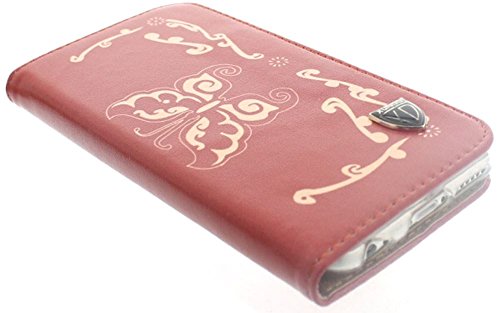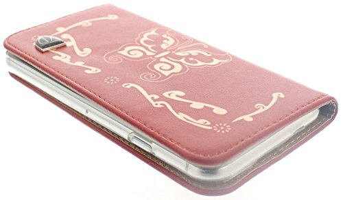Slick Accessories - Nuovo Custodia/Cover/Case in Ecopelle Include Slot per Carte di Credito e Denaro per Apple iPhone 6 / 6S, Portafoglio - Modello di Farfalla - Rosso