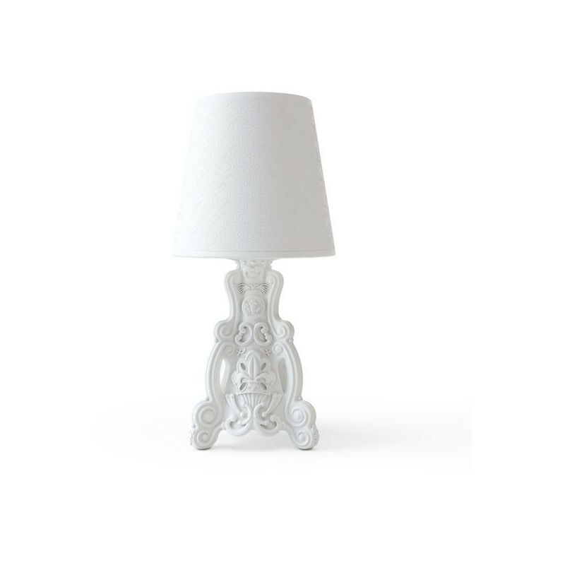 Lampada da tavolo Slide, modello Lady of Love. Lady of Love di Slide щ una classica abat-jour rivisitata in chiave contemporanea. Ricalca lo stile barocco dell'intera collezione Design Of Love, mantenendo lo stile ironico e moderno che contraddistingue questa famosa collezione. Questa lampada da tavolo di design щ realizzata in polietilene riciclabile con la tecnica dello stampaggio rotazionale. PuЄ essere utilizzata sia all'interno che all'esterno. Le sue dimensioni sono: altezza 88 cm larghezza 33 cm diametro paralume inferiore 43 cm diametro paralume superiore 29 cm. Lady of Love prevede l'utilizzo di una lampadina standard con attacco E27 e potenza 15W. La lampadina non щ inclusa. Il paralume di questa lampada da tavolo щ sempre bianco, cambia solo il colore della base. Elegante e ricca di dettagli, questa lampada щ perfetta appoggiata su un tavolino da salotto per creare luce d'atmosfera. Designed by Moro e Pigatti.
